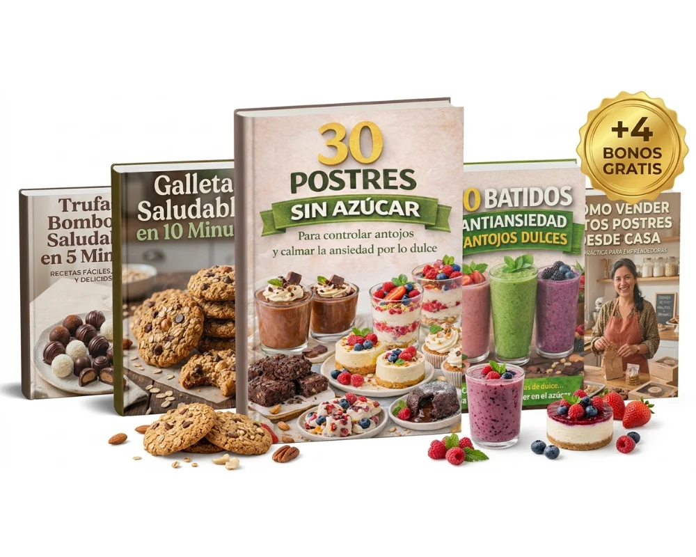 Llévate todo el libro premium "30 postres sin azúcar” +4 bonos totalmente GRATIS sólo por HOY